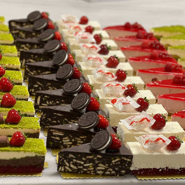 Zur Auswahl steht dir: Schokolade, Vanille, Haselnuss, Walnuss, Nougat, Kaffee, Erdbeere, Himbeere, Kirsche, verschiedene Obstfüllungen, Bananencreme, Pfirsich-Maracuja, Zitrone, Mango, Beerenmix, Mascarpone, Cookies, Kinderbueno, Rafaello und Oreo.